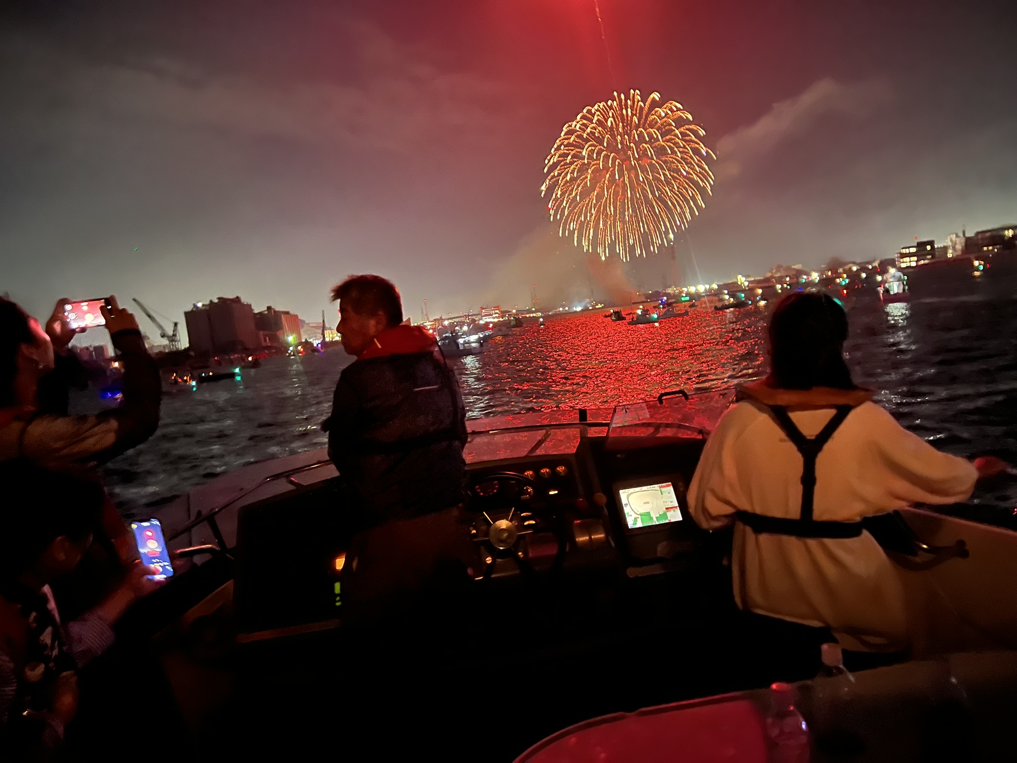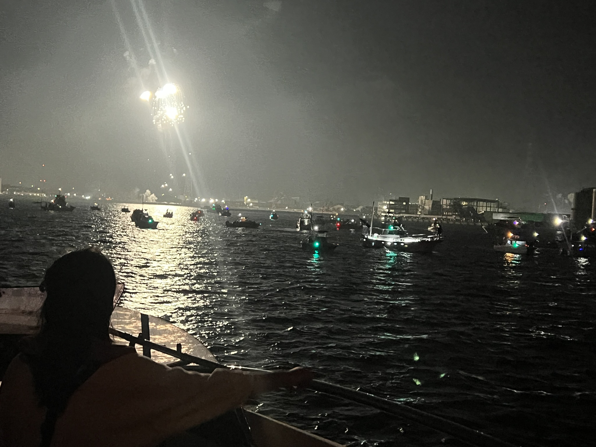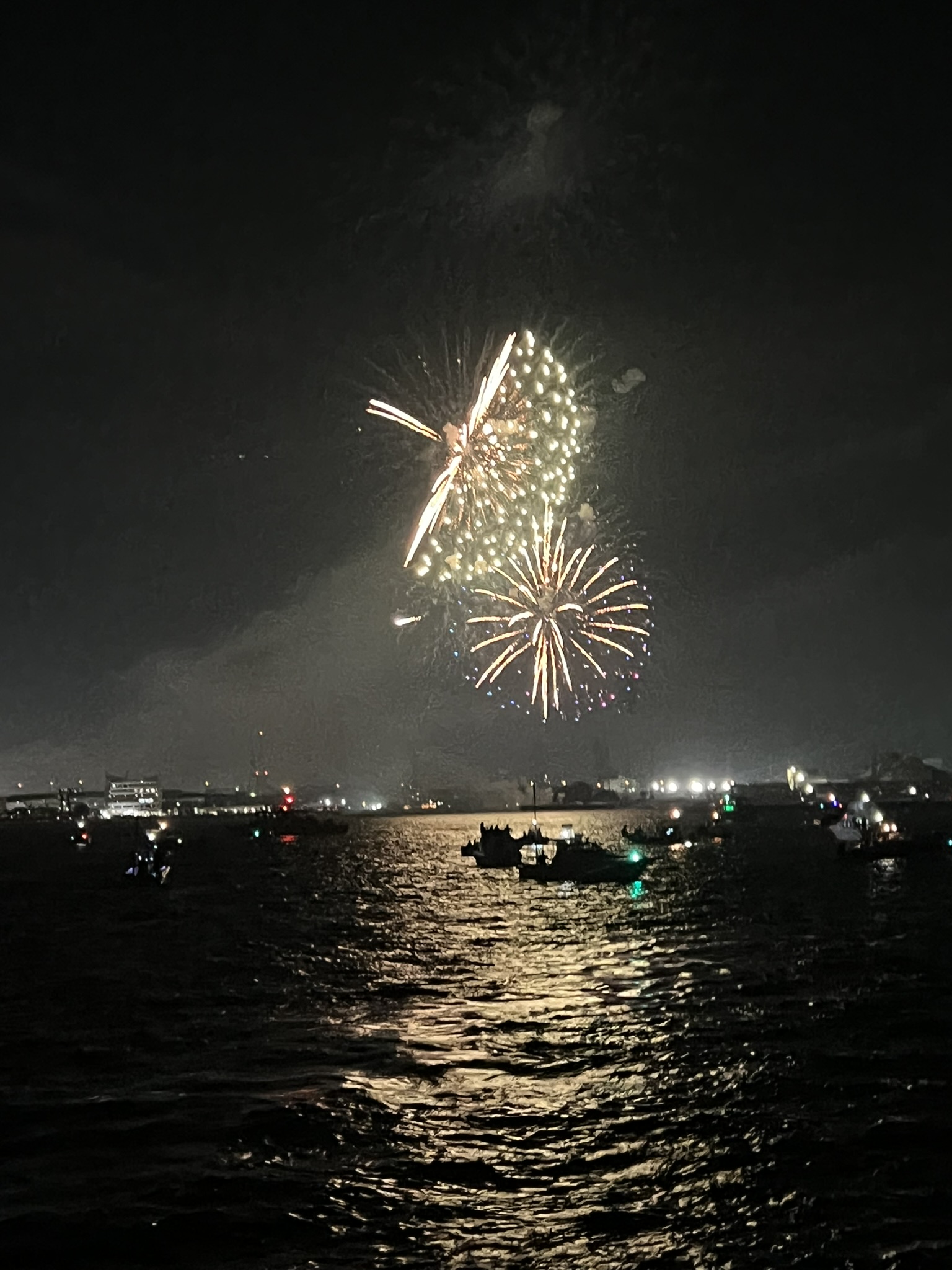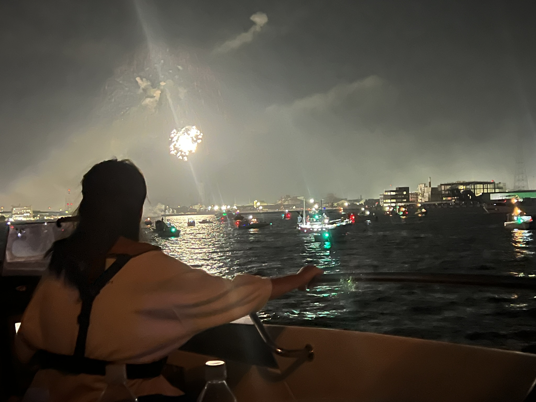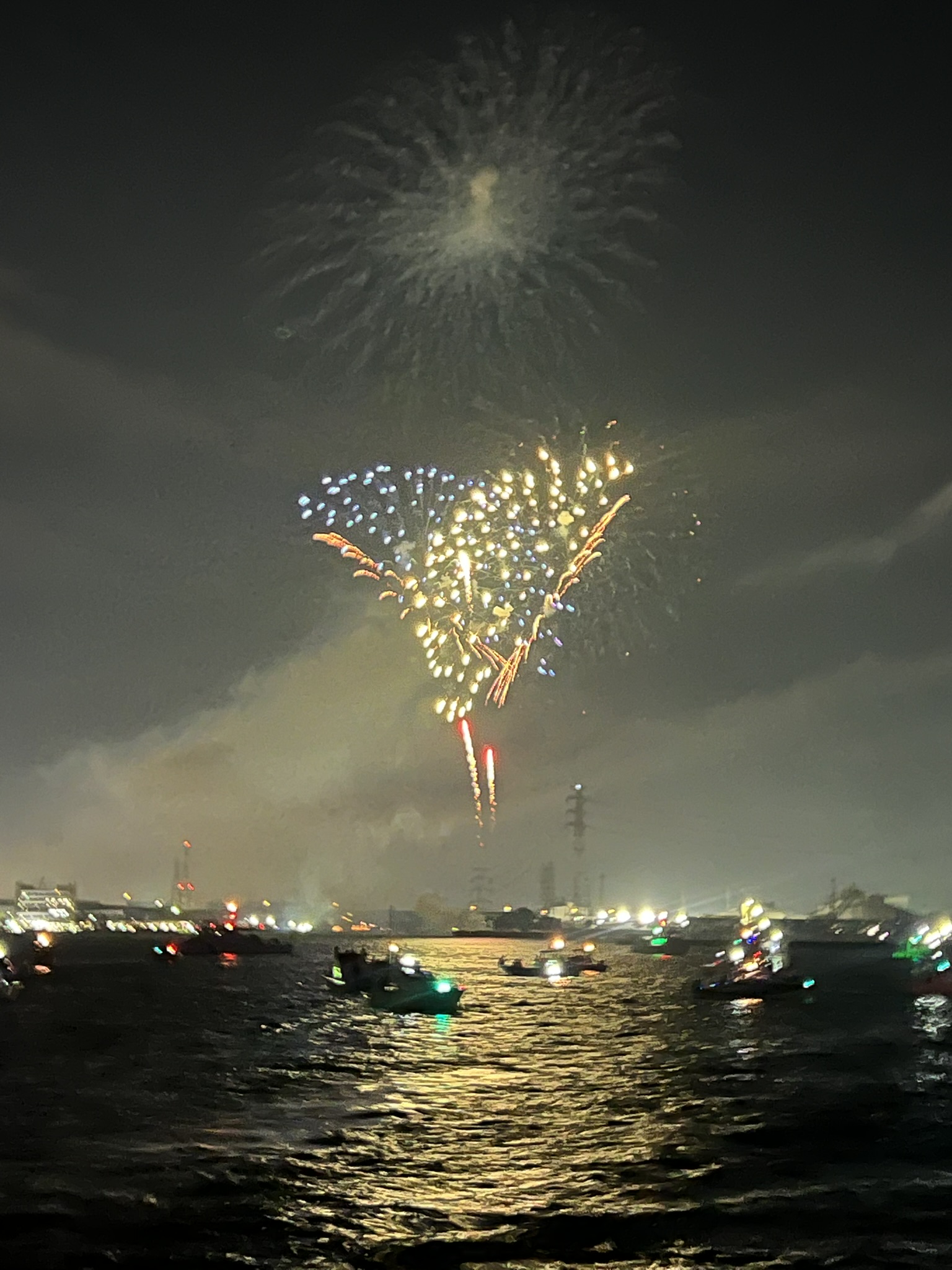 海で見る花火は陸上で見る花火とまた違った雰囲気ですごくよかったです。
