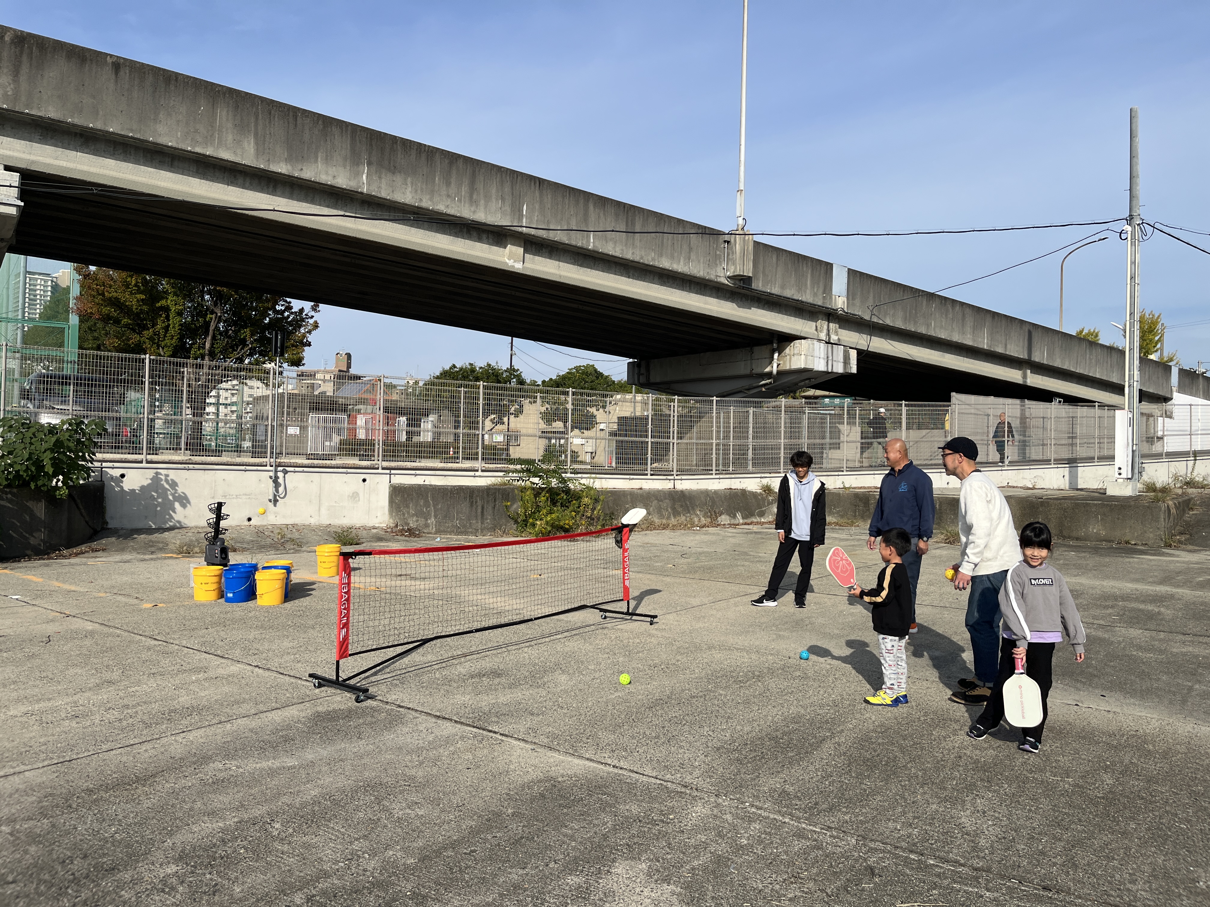 陸上では、もう一つのイベント「ピックルボール体験」も同時開催 。子供から大人まで、話題のニュースポーツを気軽に楽しみました。